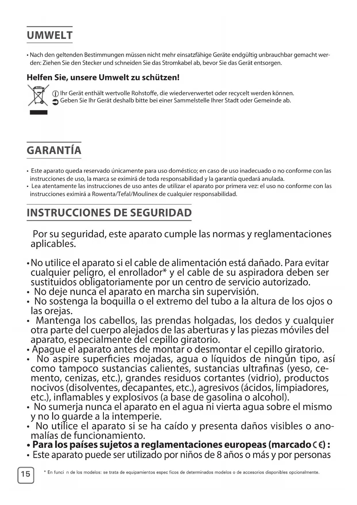 - Lea atentamente las instrucciones de uso antes de utilizar el aparato por primera vez: el uso no conforme con las instrucciones eximirá a Rowenta/Tefal/Moulinex de cualquier responsabilidad.