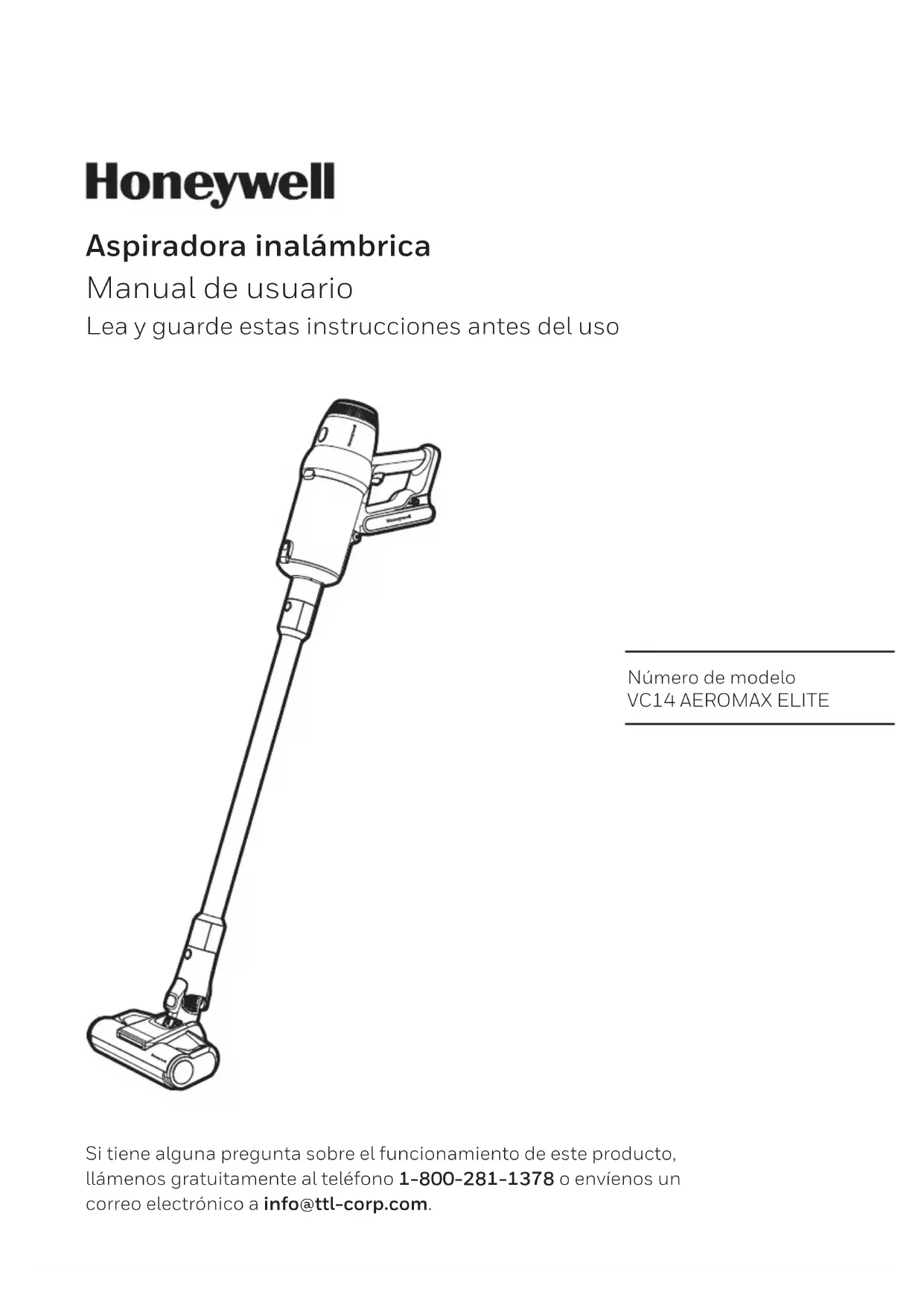 VC14 AEROMAX ELITE - Aspiradora HONEYWELL - Manual de uso y guía de instrucciones gratis