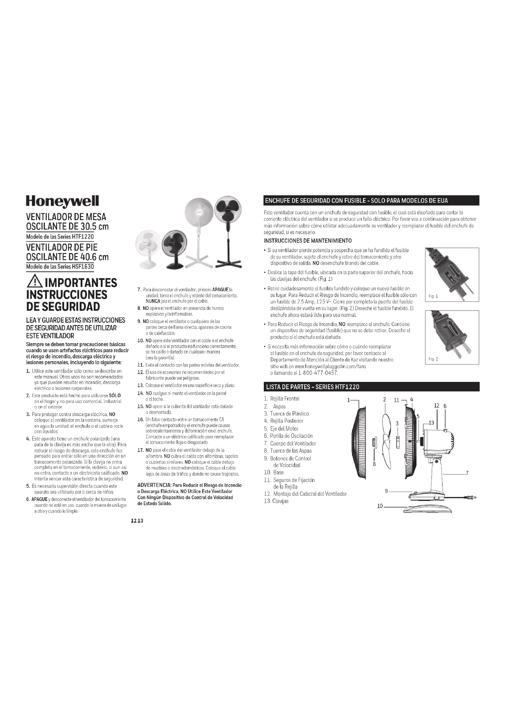 Encuentra gratis el manual del aparato HSF1630B HONEYWELL en formato PDF.