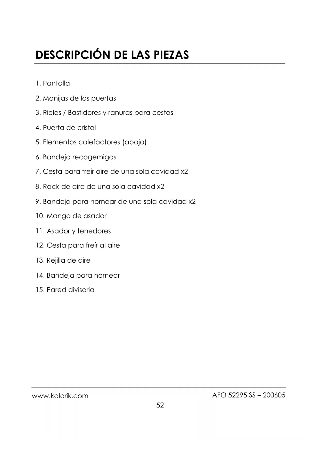 MANUAL DE USUARIO MAXX AFO 52295 SS KALORIK
