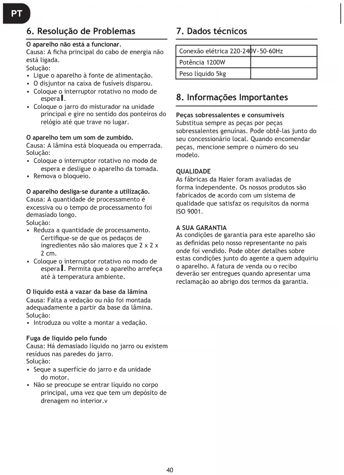HBL5B2 001 - Licuadora HAIER - Manual de uso y guía de instrucciones gratis