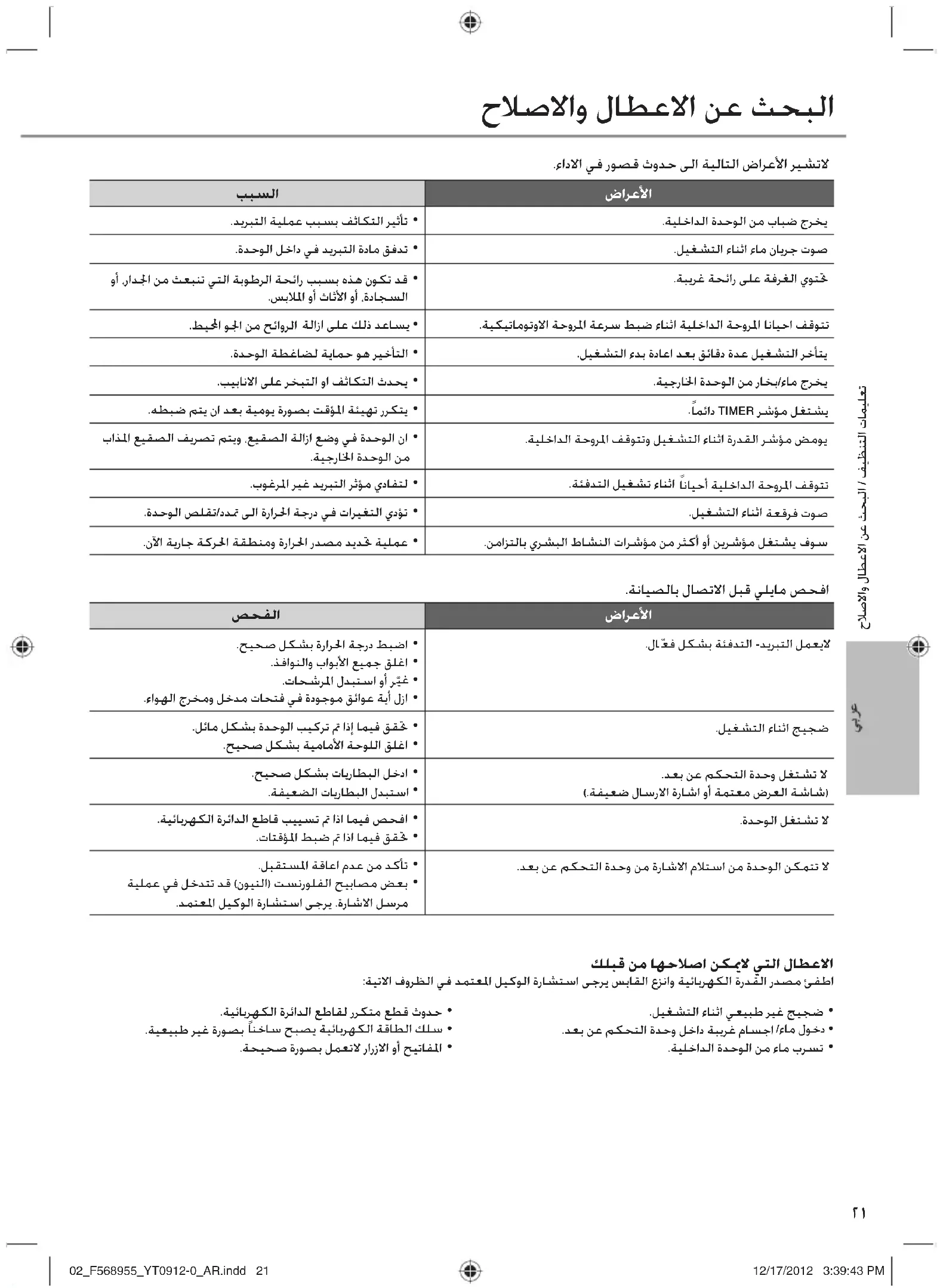 - .ﺔﻴﻠﺧﺍﺪﻟﺍ ﺓﺪﺣﻮﻟﺍ ﻦﻣ ﺀﺎﻣ ﺏﺮﺴﺗ ﺡﻼﺻﻻﺍﻭ ﻝﺎﻄﻋﻻﺍ ﻦﻋ ﺚﺤﺒﻟﺍ ﺡﻼﺻﻻﺍﻭ ﻝﺎﻄﻋﻻﺍ ﻦﻋ ﺚﺤﺒﻟﺍ / ﻒﻴﻈﻨﺘﻟﺍ ﺕﺎﻤﻴﻠﻌﺗ 02_F568955_YT0912-0_AR.indd 2102_F568955_YT0912-0_AR.indd 21 12/17/2012 3:39:43 PM12/17/2012 3:39:43 PM22 Proporcione el máximo confort, limpie el aire y optimice el ahorro de energía ECONAVI y AUTO COMFORT Equipado con el sensor de actividad humana, la unidad de aire acondicionado le proporciona aire frío o caliente y mantiene la habitación a una temperatura confortable con un consumo de energía mínimo. Además, el sensor de luz solar detecta la intensidad de la luz solar y ayuda a controlar las temperaturas de calentamiento/enfriamiento para proporcionar un confort óptimo. Para más detalles, consulte “Saber más...”. nanoe-G Desactiva microorganismos peligrosos como lo son virus, bacterias, etc. para mantener el aire limpio. Además desactiva virus y bacteria en el fi ltro para mantener limpio el interior de la unidad. F568955_YT0912-0.indb 22F568955_YT0912-0.indb 22 12/17/2012 4:17:08 PM12/17/2012 4:17:08 PM23 Español (LE) Guía rápida