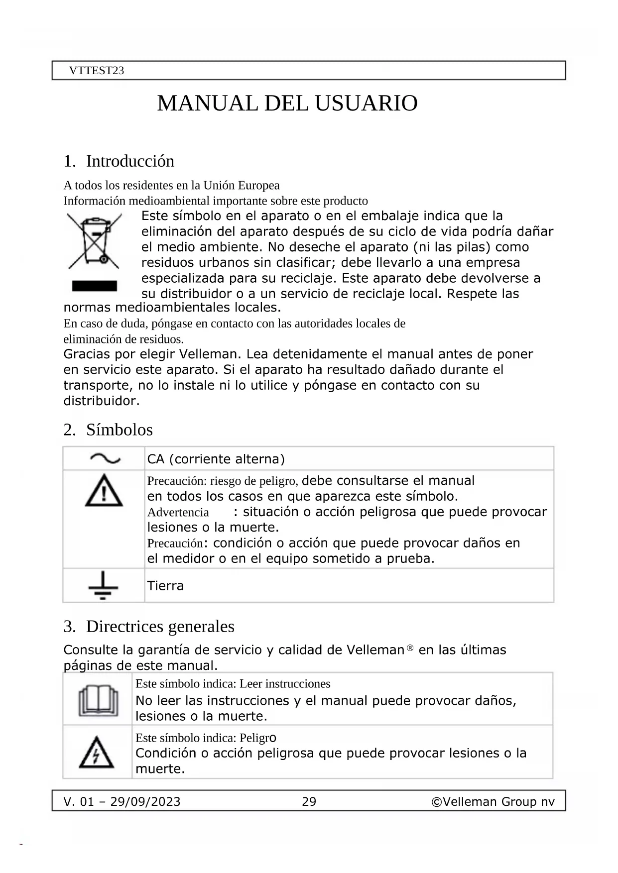 MANUAL DE USUARIO VTTEST23 VELLEMAN