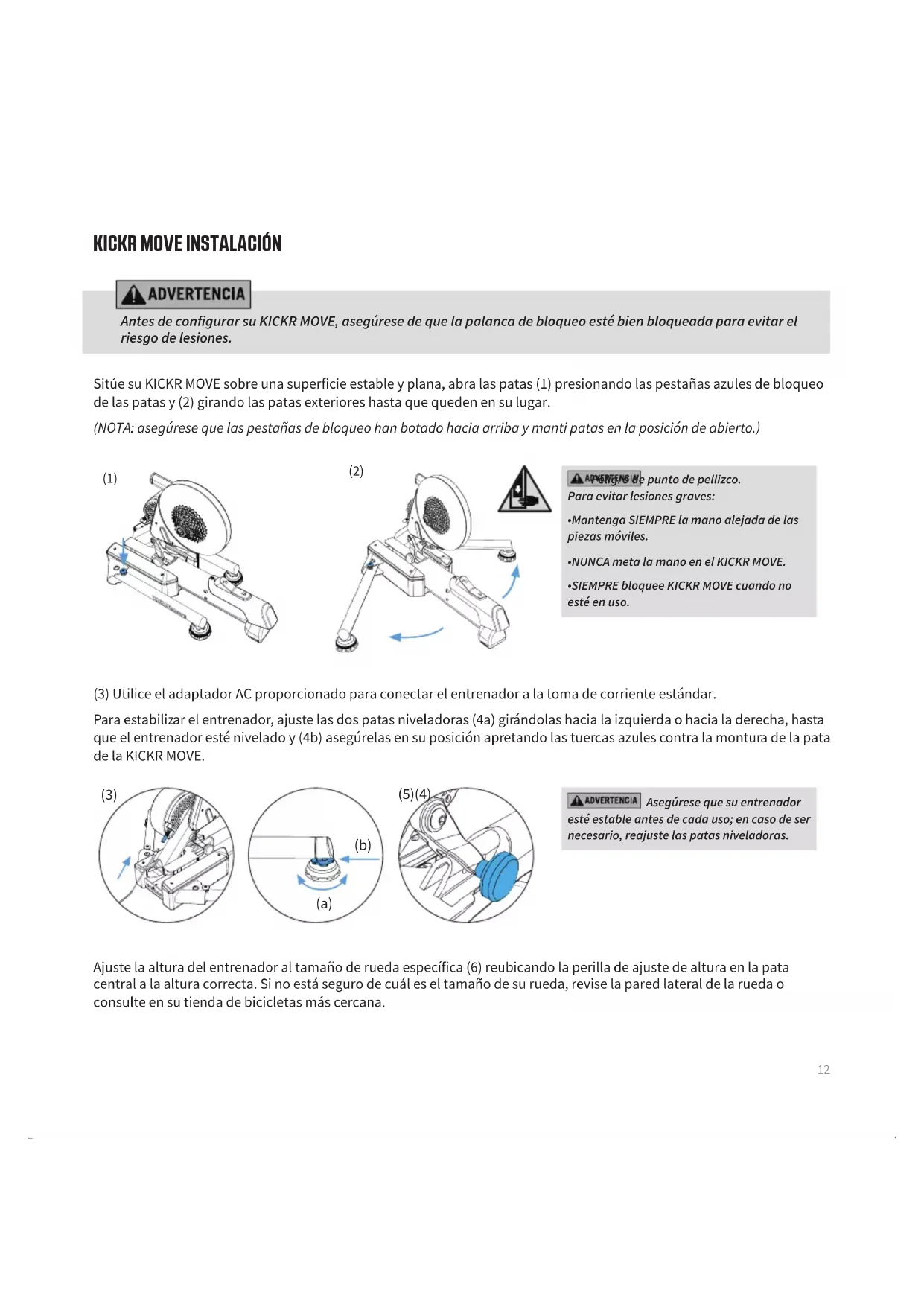 - La inestabilidad del KICKR MOVE podría provocar lesiones graves. Solo use el KICKR MOVE en supercies estables y niveladas.