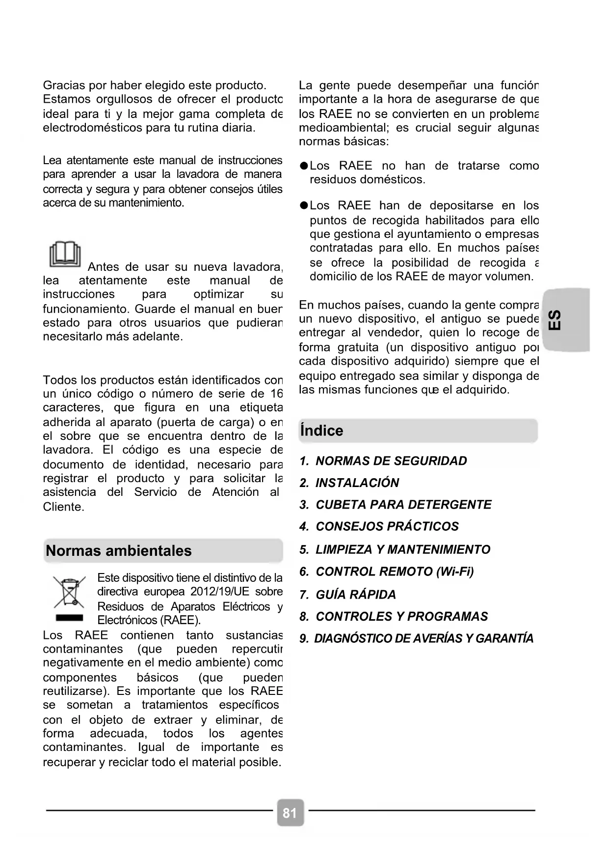 Lea atentamente este manual de instrucciones para aprender a usar la lavadora de manera correcta y segura y para obtener consejos útiles acerca de su mantenimiento.
