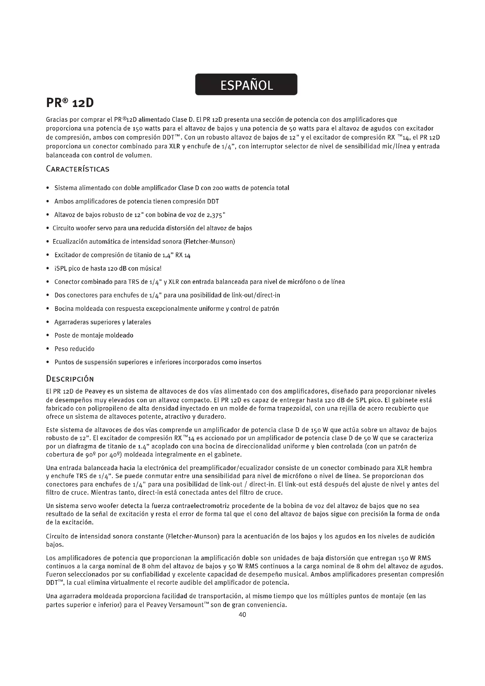 Encuentra gratis el manual del aparato PR 12D PEAVEY en formato PDF.