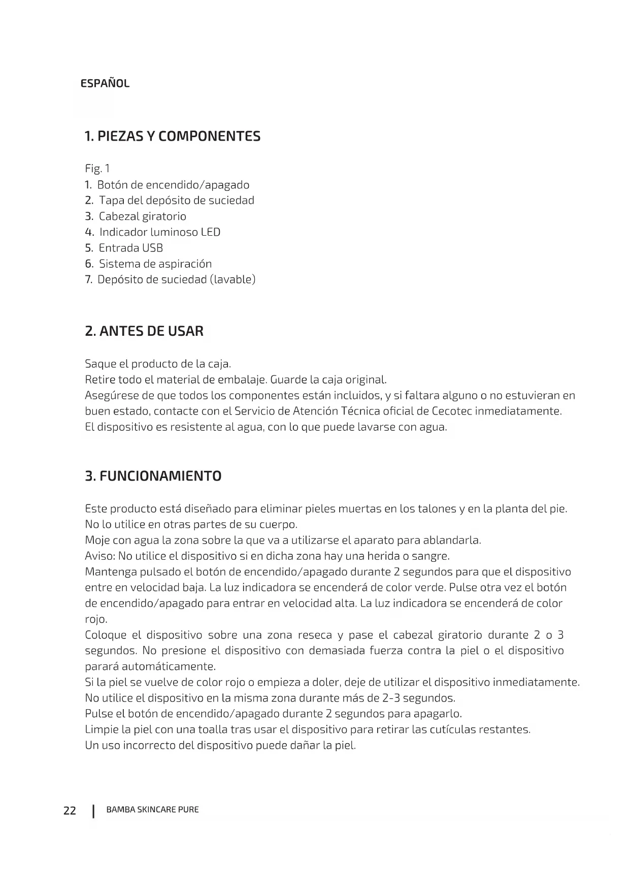 MANUAL DE USUARIO Bamba SkinCare Pure CECOTEC