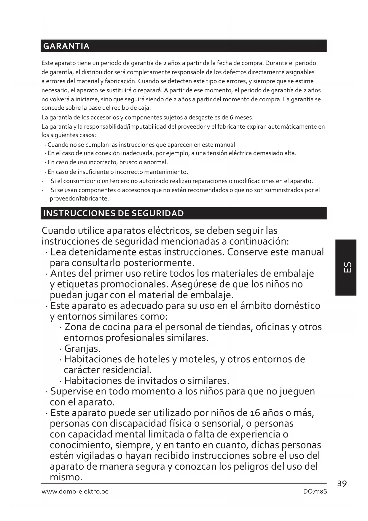 - Este aparato puede ser utilizado por niños de 16 años o más, personas con discapacidad física o sensorial, o personas con capacidad mental limitada o falta de experiencia o conocimiento, siempre, y en tanto en cuanto, dichas personas estén vigiladas o hayan recibido instrucciones sobre el uso del aparato de manera segura y conozcan los peligros del uso del mismo.40 DO7118S