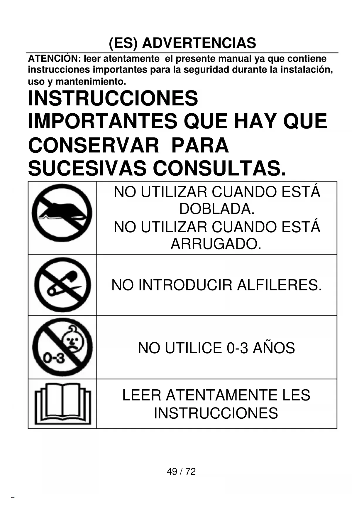 - Los niños menores de 3 años no deben usar este aparato por su incapacidad de reaccionar ante un recalentamiento.