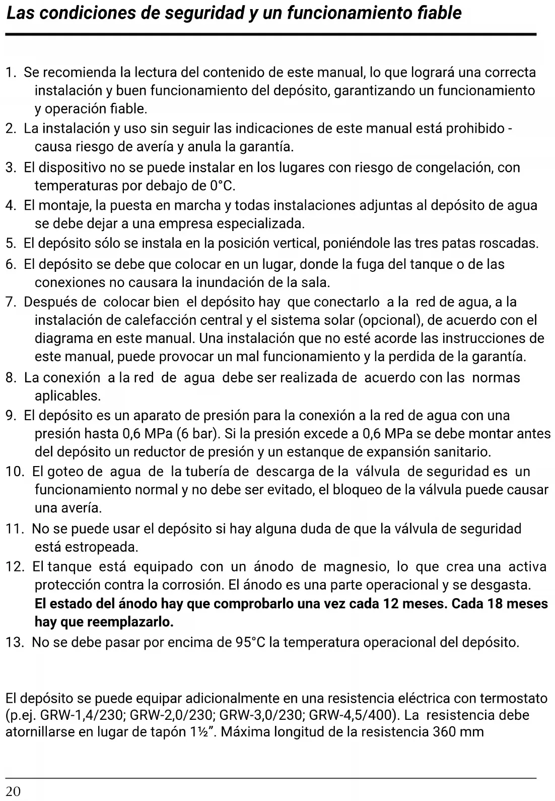 12. El tanque está equipado con un ánodo de magnesio, lo que crea una activa