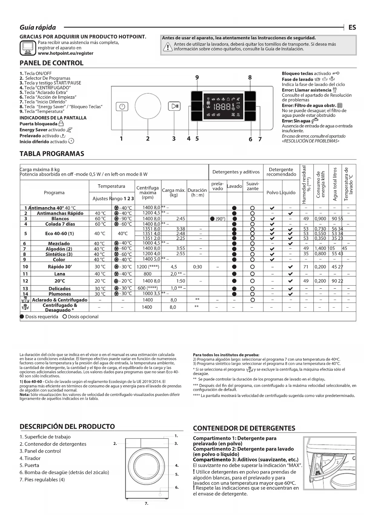 Descarga las instrucciones para tu Lavadora en formato PDF gratis! Encuentra tus instrucciones BI WMHG 81485 EU - HOTPOINT y toma tu dispositivo electrónico nuevamente en la mano. En esta página están publicados todos los documentos necesarios para el uso de su dispositivo. BI WMHG 81485 EU de la marca HOTPOINT.
