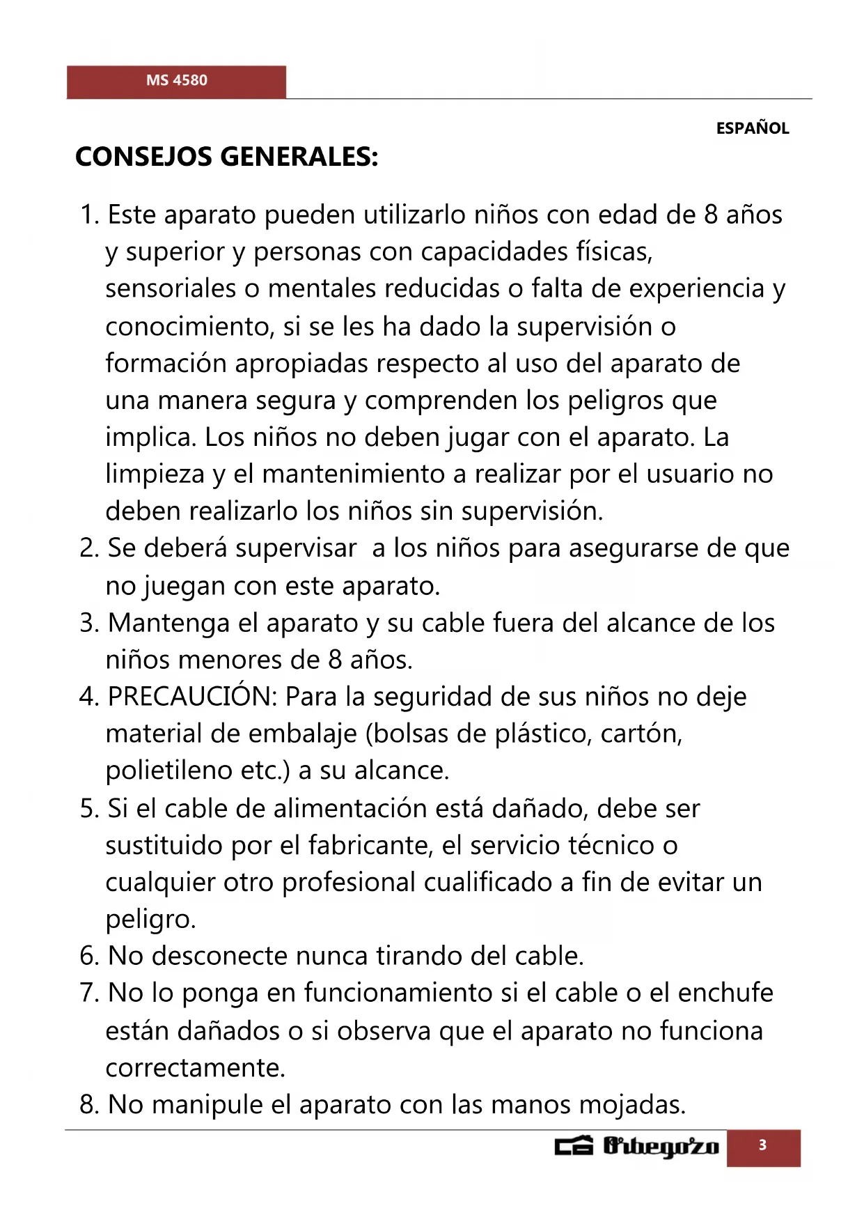 MANUAL DE USUARIO MS 4580 Orbegozo