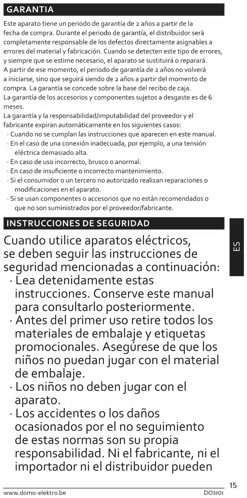 - Los accidentes o los daños ocasionados por el no seguimiento de estas normas son su propia responsabilidad. Ni el fabricante, ni el importador ni el distribuidor pueden16 DO3101