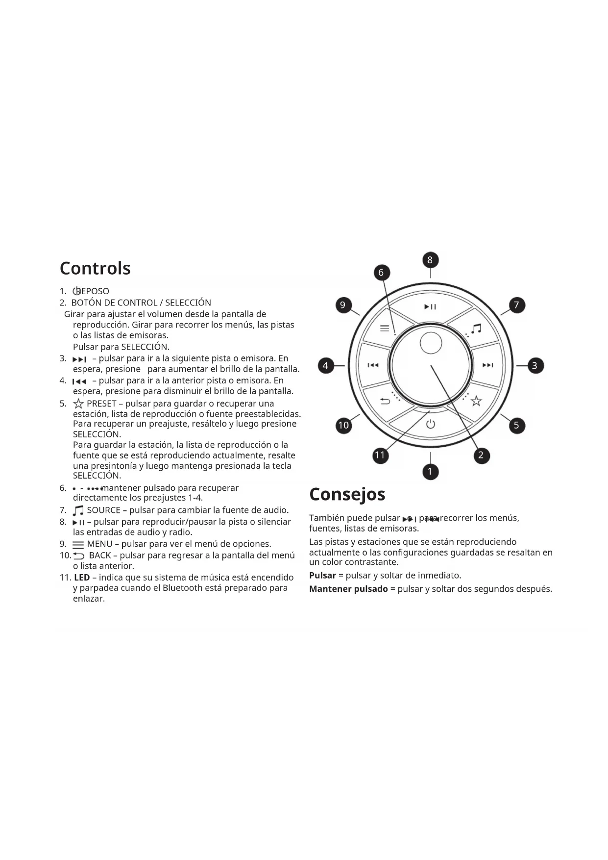 11. LED – indica que su sistema de música está encendido