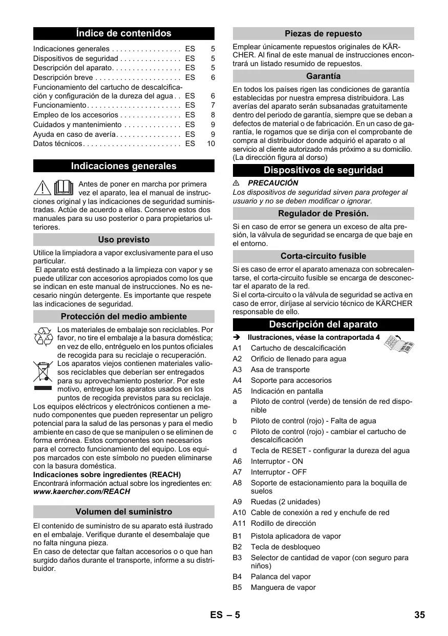 Si el corta-circuito o la valvula de seguidad se activa en caso de error, dirijase al service Tecnico de KARCHER responsable dearlo.