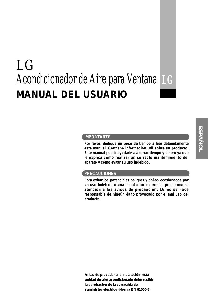 TELAIO ESTERNO DI SOSTEGNO AL PUNTO DI EQUILIBRIO DEL RAC LG Acondicionador de Aire para Ventana LG MANUAL DEL USUARIO Por favor, dedique un poco de tiempo a leer detenidamente este manual. Contiene información útil sobre su producto.