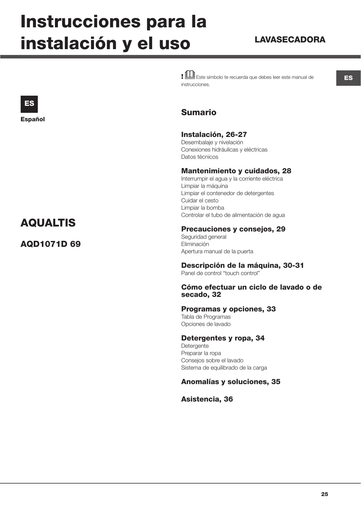 MANUAL DE USUARIO AQD1071D 69 EU/A HOTPOINT