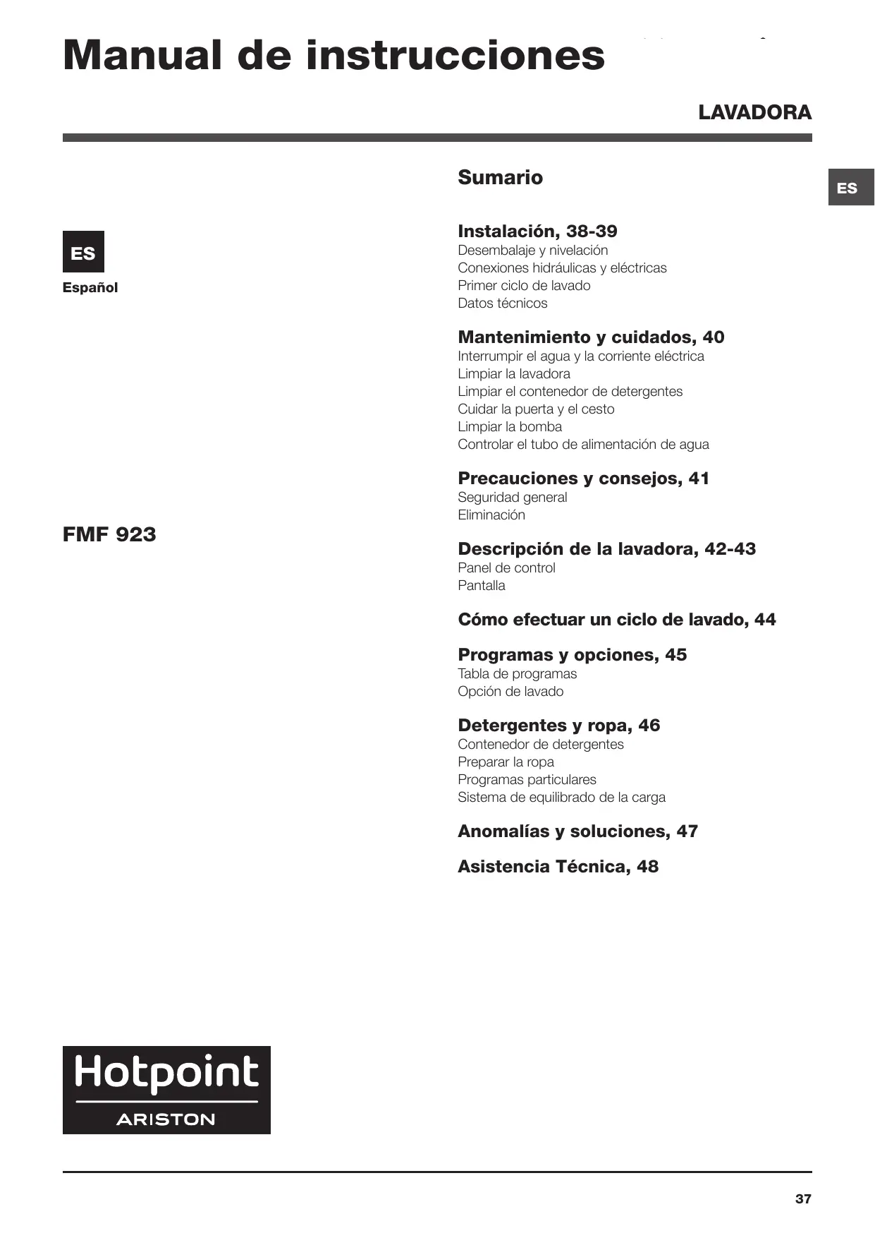 MANUAL DE USUARIO FMF 923K EU HOTPOINT