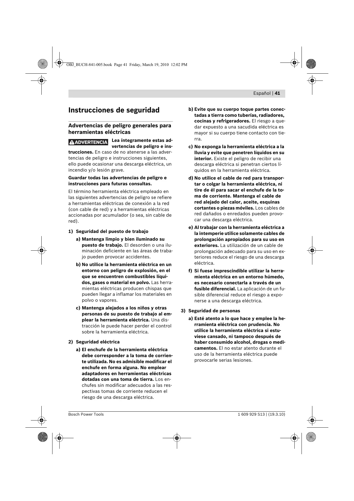 equipos de aspiraciôn o captaciôn de polvo, asegürese que éstos estén monta- dos y que sean utilizados correctamente. El empleo de estos equipos reduce los riesgos derivados del polvo. d d Q | 70m BucHr-841-005 book Page 42 Friday, March 19, 2010 12:02 PM Ÿ | Éd