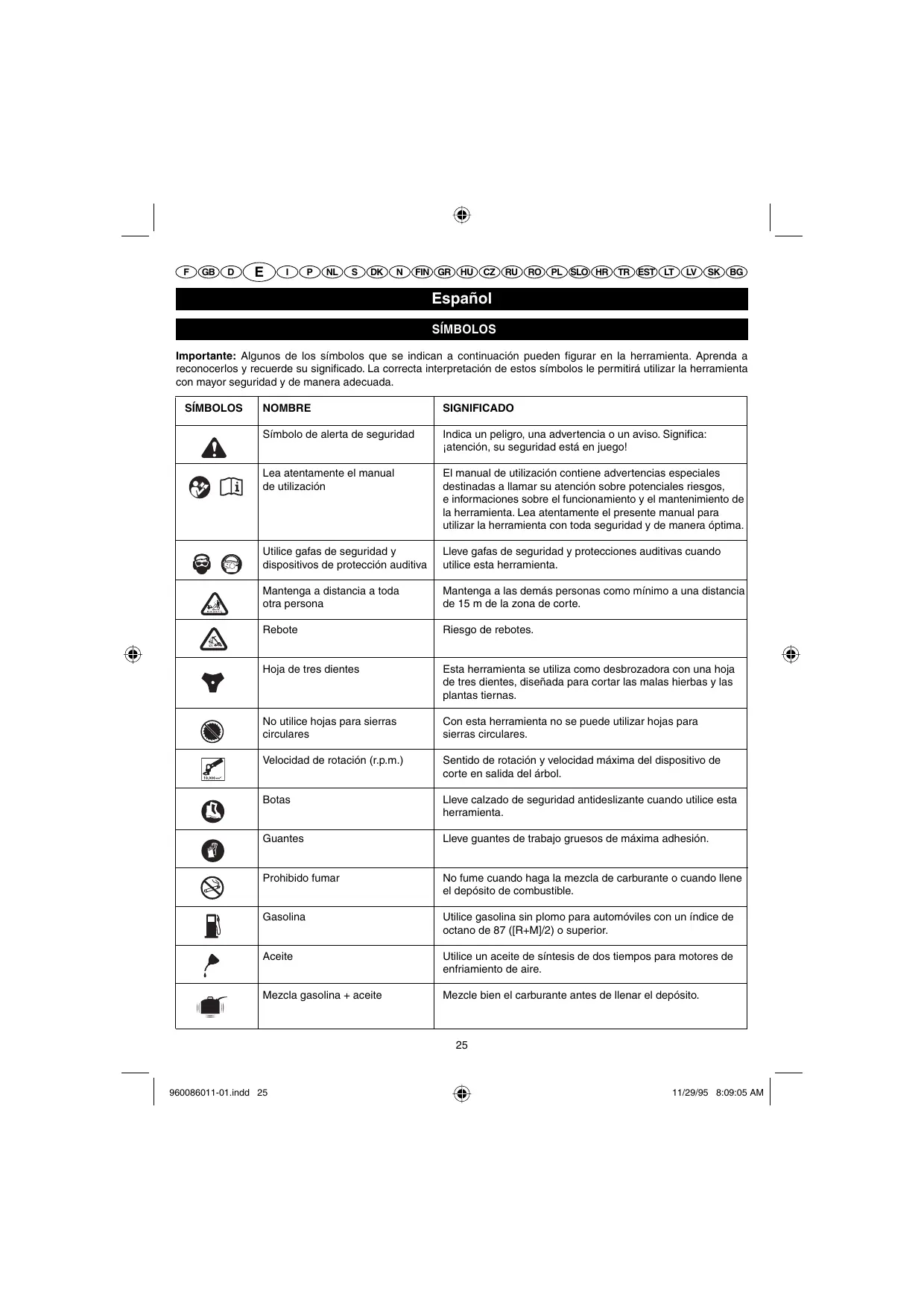 Un mantenimiento incorrecto de la herramienta puede producir un exceso de calamina, lo cual puede reducir la eficacia de la herramienta y provocar una pérdida de residuo aceitoso negro por el escape. Cerciórese de que los dispositivos de protección, las correas, las empuñaduras y los deflectores estén bien instalados y correctamente sujetos. De este modo, reducirá el riesgo de heridas graves.