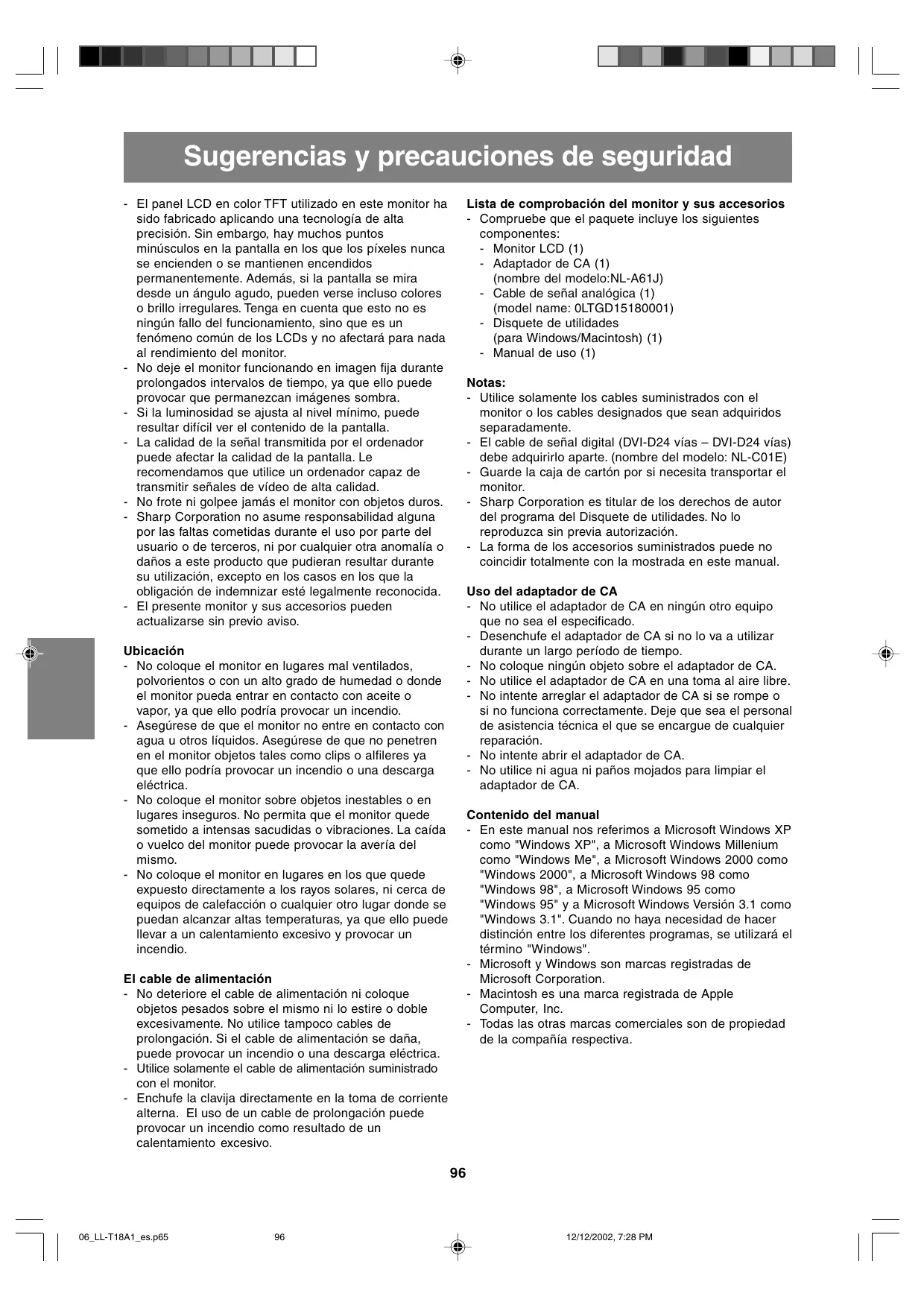 12/12/2002, 7:28 PM Sugerencias y precauciones de seguridad