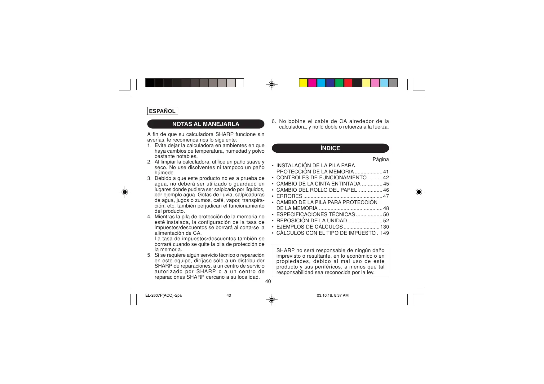 EL-2607P - Calculadora SHARP - Manual de uso y guía de instrucciones gratis