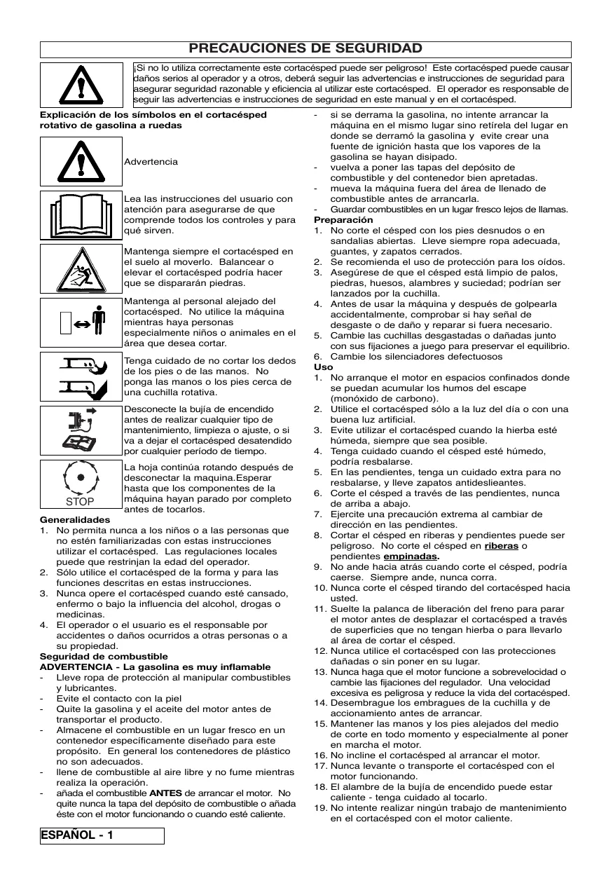 | Tipo de transmisión | Manual o autopropulsada |