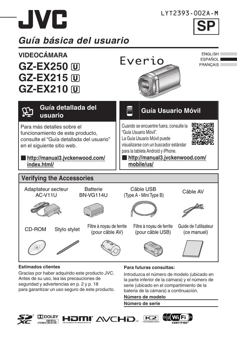 Encuentra gratis el manual del aparato GZ-EX210AUS JVC en formato PDF.