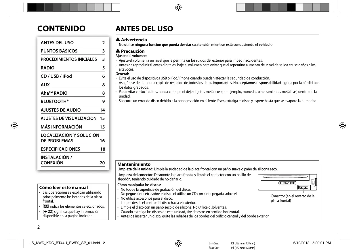 Encuentra gratis el manual del aparato KDC-BT44U KENWOOD en formato PDF.