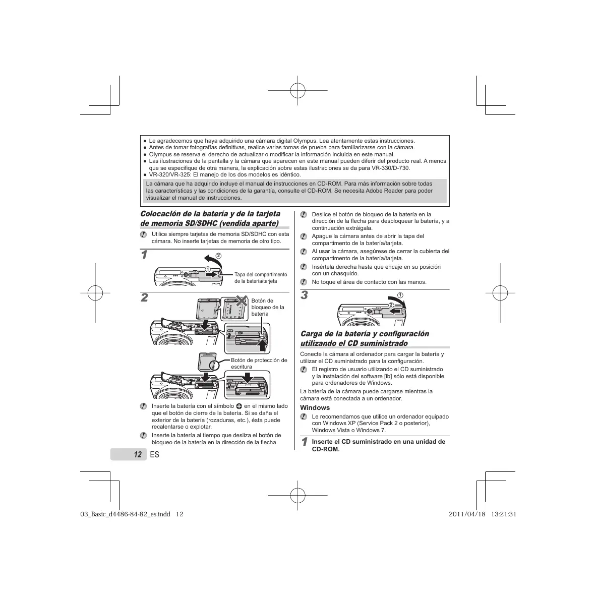 Descarga las instrucciones para tu Cámara digital en formato PDF gratis! Encuentra tus instrucciones VR-325 - OLYMPUS y toma tu dispositivo electrónico nuevamente en la mano. En esta página están publicados todos los documentos necesarios para el uso de su dispositivo. VR-325 de la marca OLYMPUS.