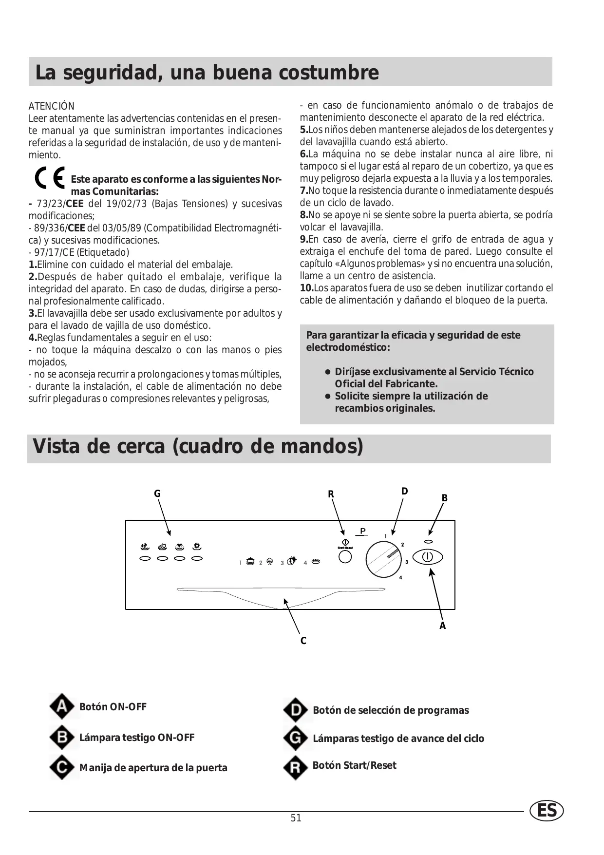 Después de haber efectuado todas las operaciones indicadas en los capitulos precedentes y haber abierto completamente el grifo de agua, pulse el botén ON-OFF "A" ubicado en el cuadro de mandos; la luz testigo "B" se iluminarä.