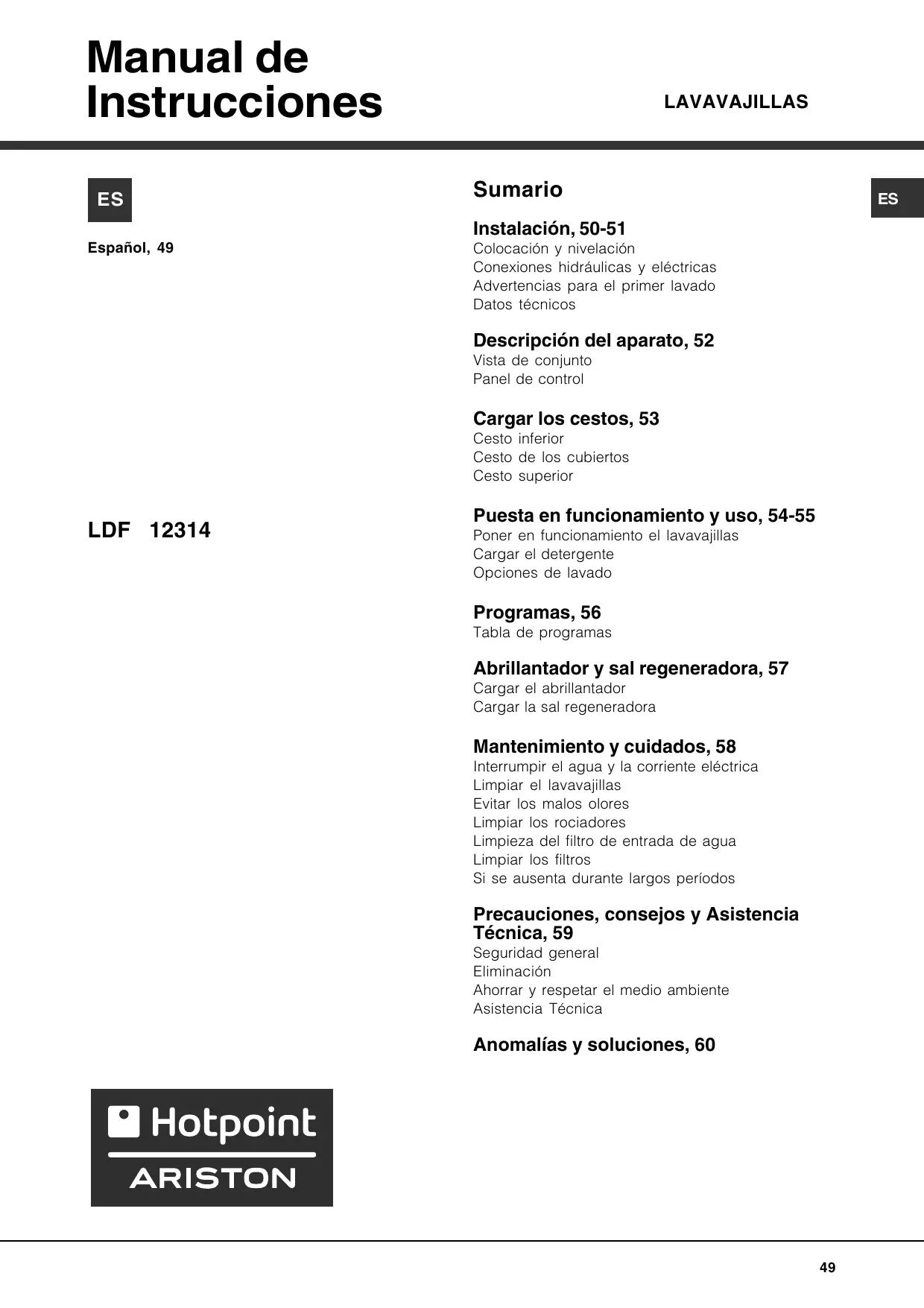 Encuentra gratis el manual del aparato LDF 12314 EU/HA.R HOTPOINT en formato PDF.