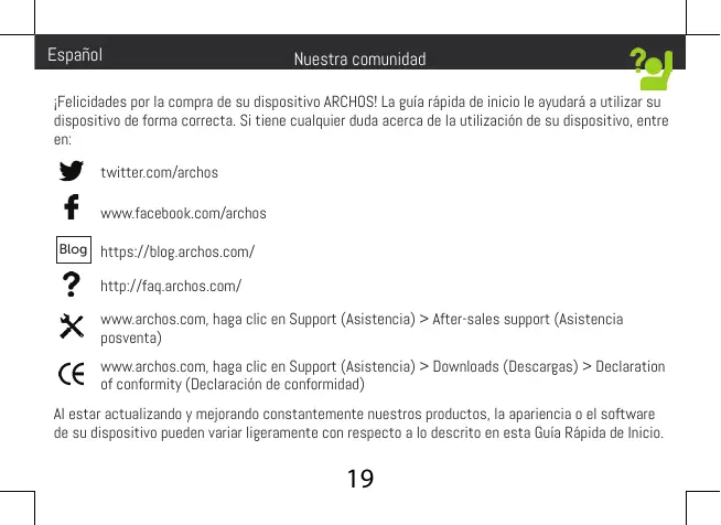 Descarga las instrucciones para tu Teléfono inteligente en formato PDF gratis! Encuentra tus instrucciones 55 DIAMOND SELFIE, 55 DIAMOND SELFIE LITE - ARCHOS y toma tu dispositivo electrónico nuevamente en la mano. En esta página están publicados todos los documentos necesarios para el uso de su dispositivo. 55 DIAMOND SELFIE, 55 DIAMOND SELFIE LITE de la marca ARCHOS.