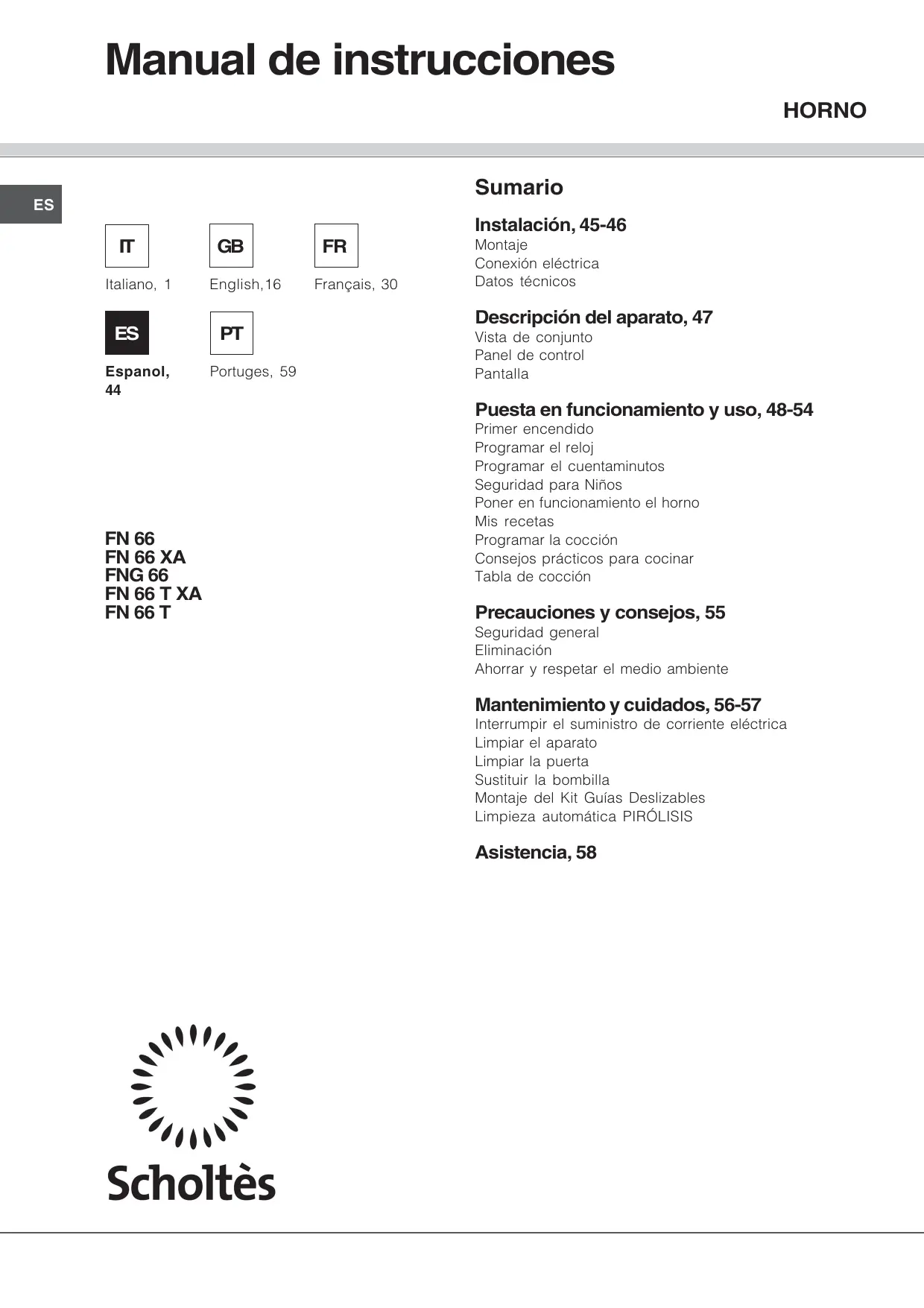 Encuentra gratis el manual del aparato FN 66 XA SCHOLTES en formato PDF.