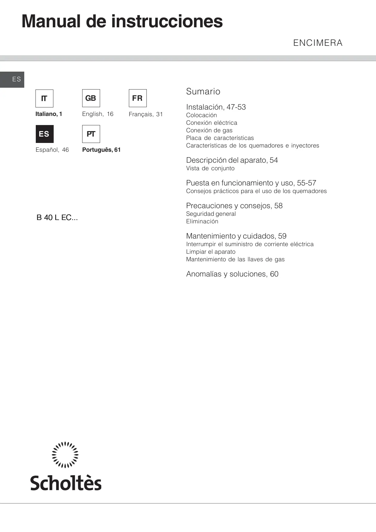 MANUAL DE USUARIO B 40 L EC F SCHOLTES