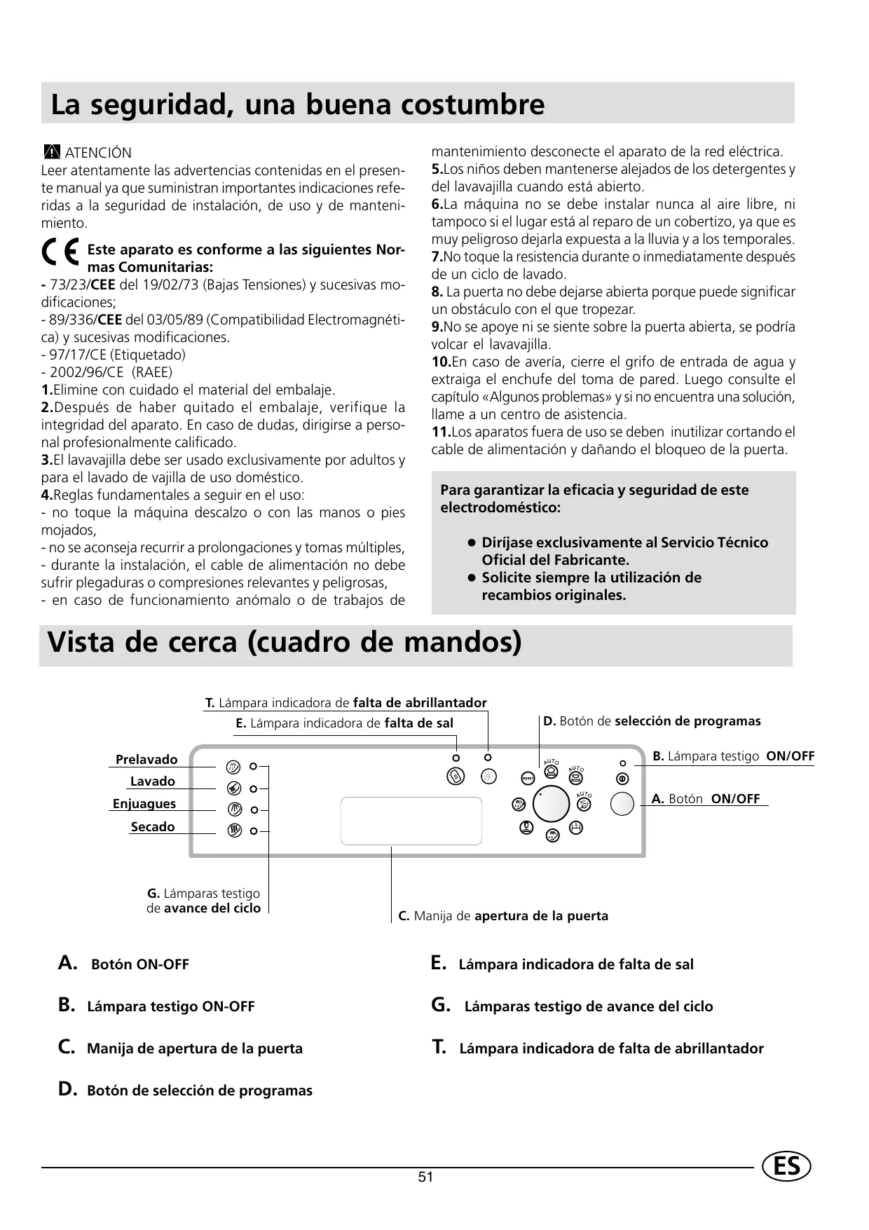 Si centellea con fecuencia rapida la luz testigo 2 (lavado) APAGUE Y VUELVA A ENCENDER el lavavajilla afterwards de un minuto. Si la alarma permanece, primero cierre el grifo de agua para evaporar inundaciones, bajo desconecte el aparato y llama a la asistencia技术水平.