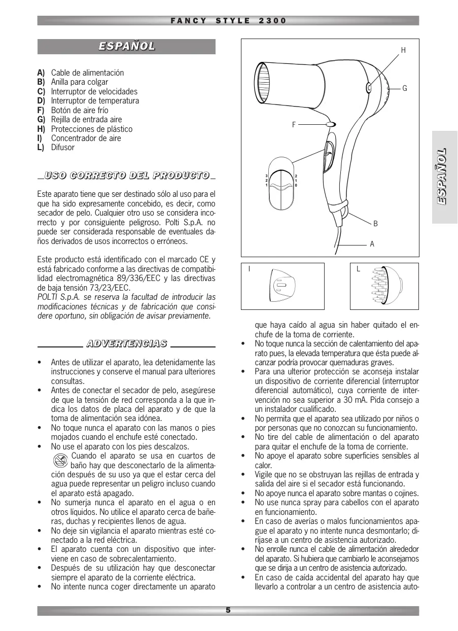 FANCY STYLE 2300 - Secador de pelo POLTI - Manual de uso y guía de instrucciones gratis