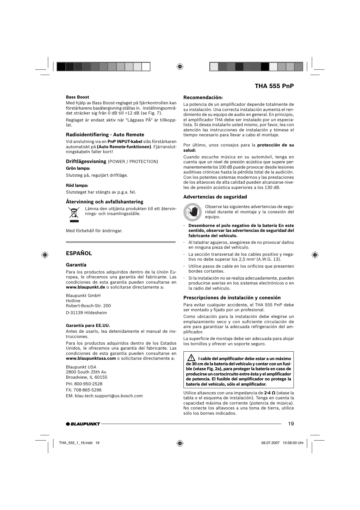 THA 555 PNP - Amplificador de coche BLAUPUNKT - Manual de uso y guía de instrucciones gratis