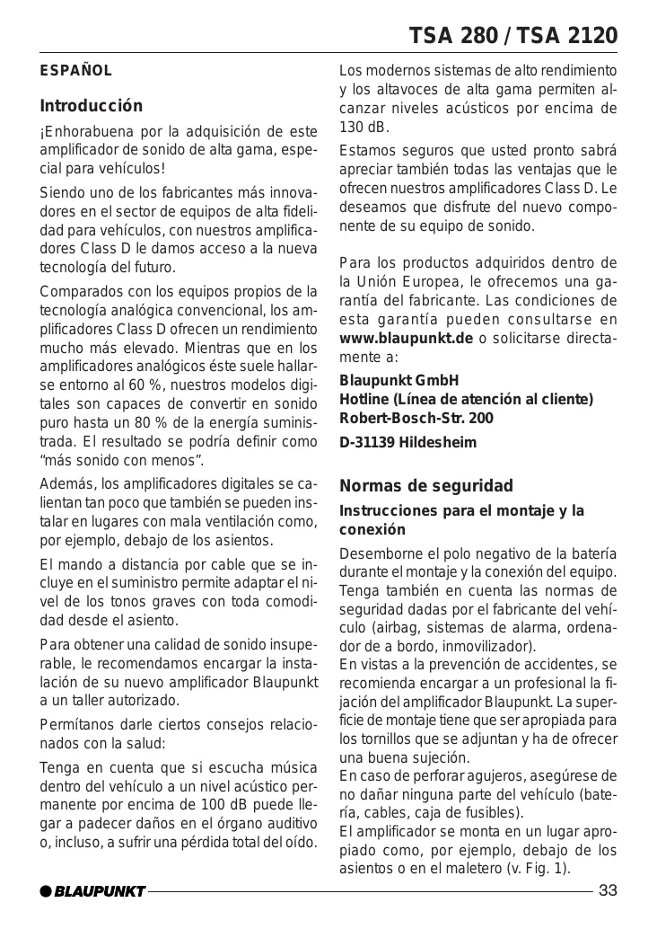 MANUAL DE USUARIO TSA 280/ TSA 2120 BLAUPUNKT