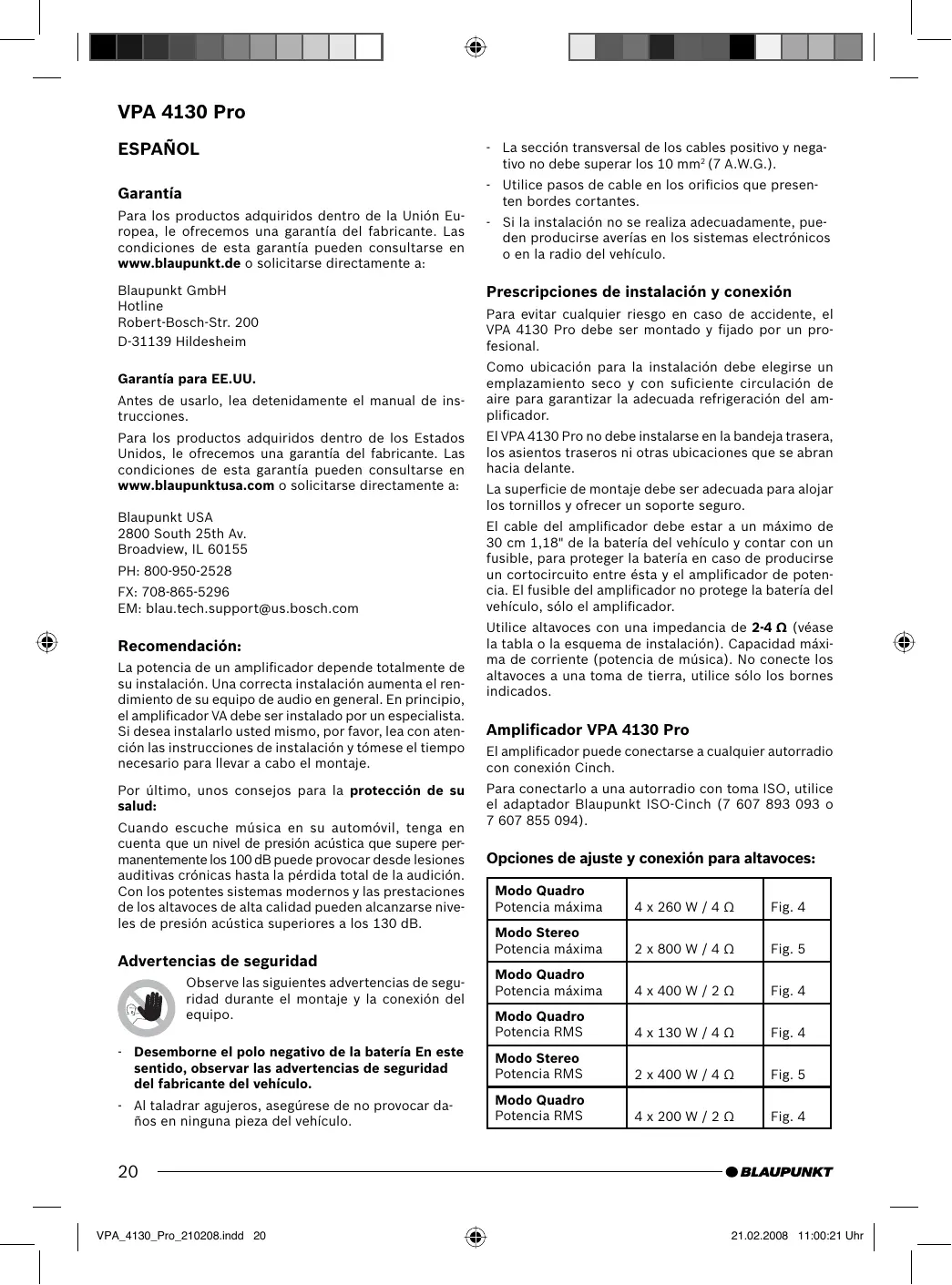 MANUAL DE USUARIO VELOCITY VPA 4130 PRO BLAUPUNKT