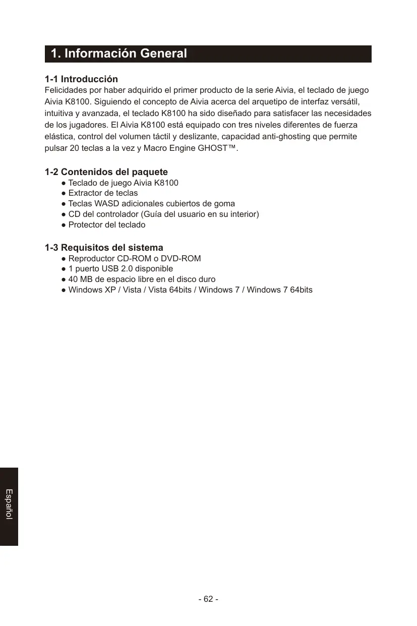 Felicidades por haber adquirido el primer producto de la serie Aivia, el teclado de juego