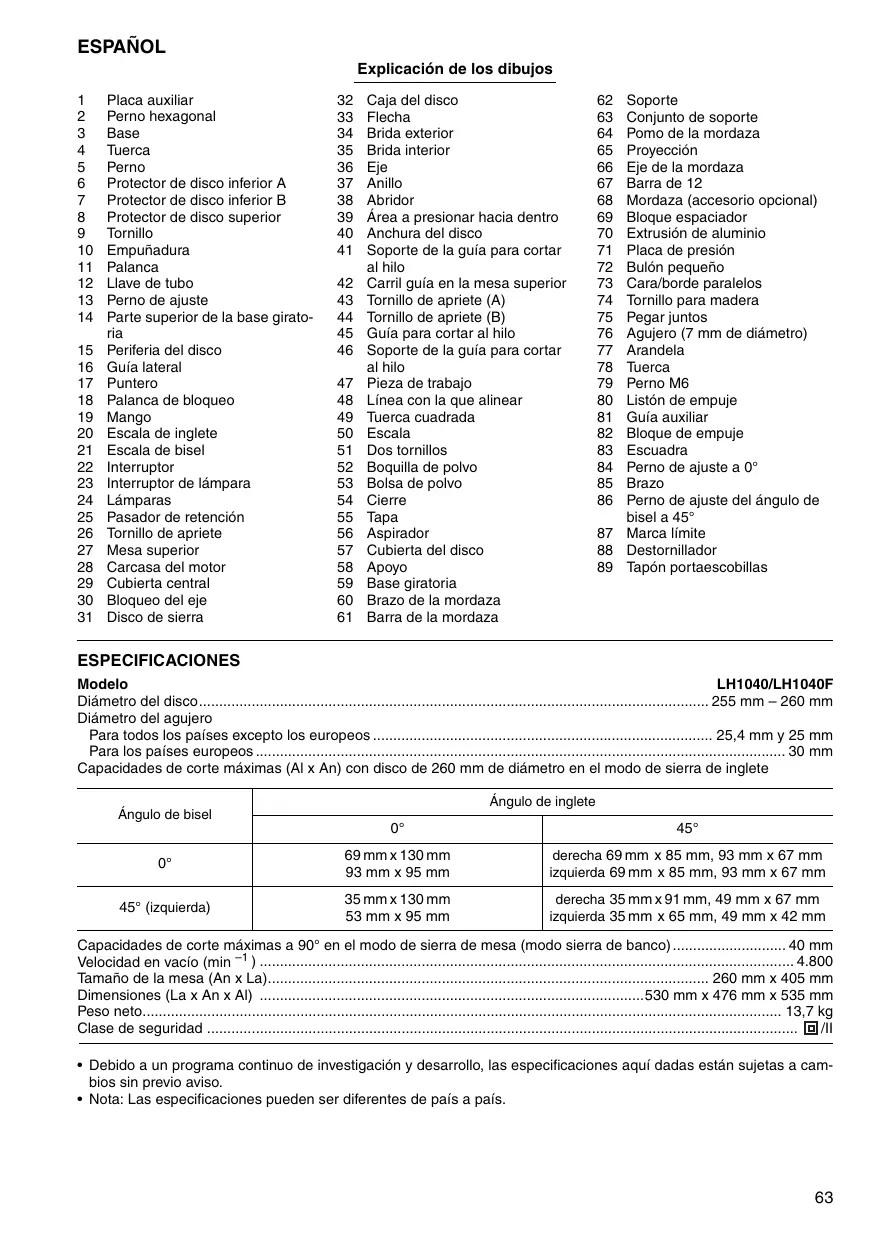 LH1040 - Sierra ingletadora MAKITA - Manual de uso y guía de instrucciones gratis