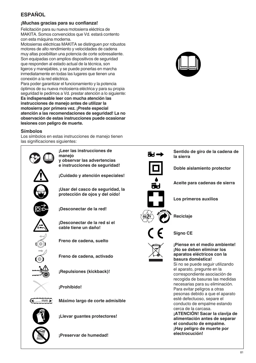 UC3530A - Motosierra electrica MAKITA - Manual de uso y guía de instrucciones gratis