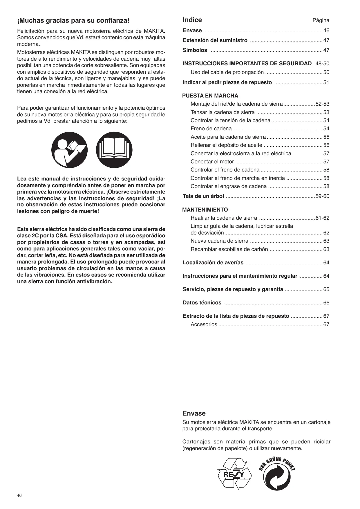 Descarga las instrucciones para tu Motosierra electrica en formato PDF gratis! Encuentra tus instrucciones UC4030A - MAKITA y toma tu dispositivo electrónico nuevamente en la mano. En esta página están publicados todos los documentos necesarios para el uso de su dispositivo. UC4030A de la marca MAKITA.