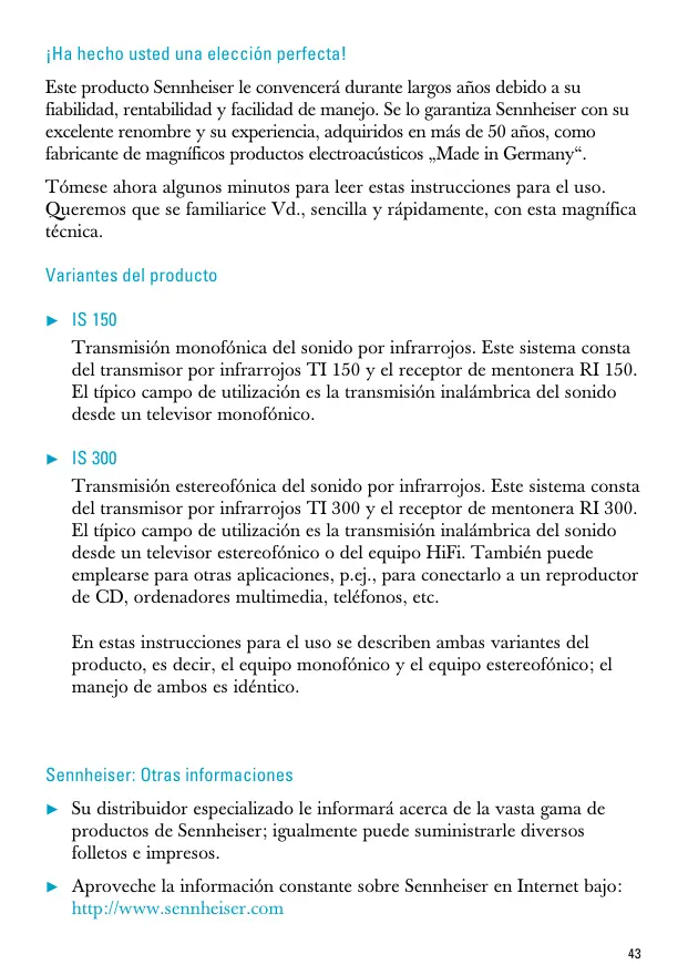Encuentra gratis el manual del aparato IS 300 SENNHEISER en formato PDF.