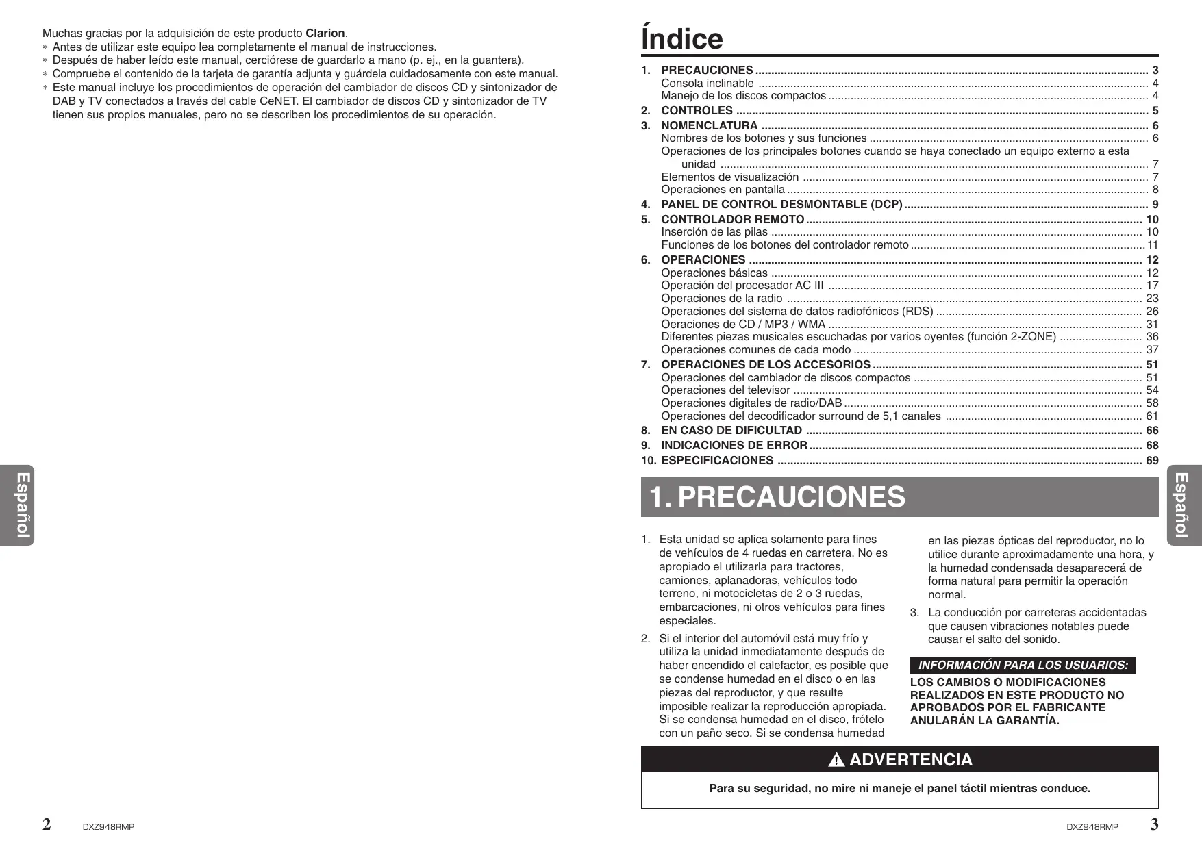 Encuentra gratis el manual del aparato DXZ948RMP CLARION en formato PDF.