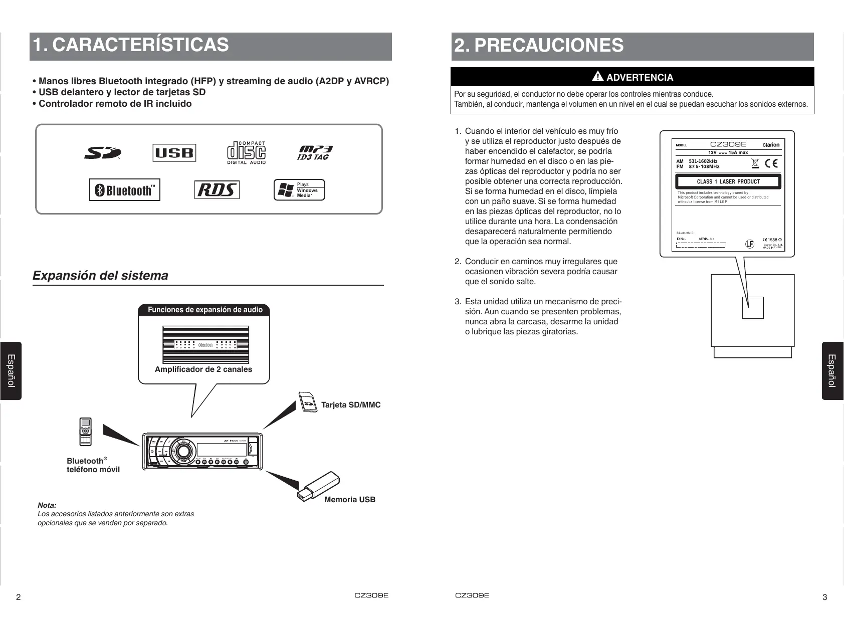MANUAL DE USUARIO CZ309E CLARION