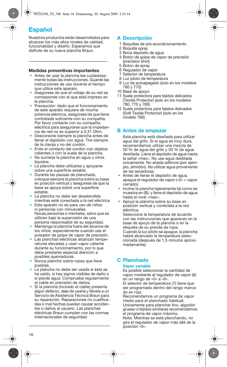 MANUAL DE USUARIO TEXSTYLE 780 BRAUN