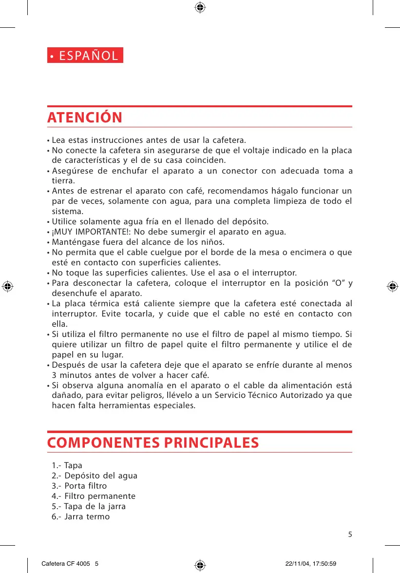 CF4005 - Cafetera SOLAC - Manual de uso y guía de instrucciones gratis