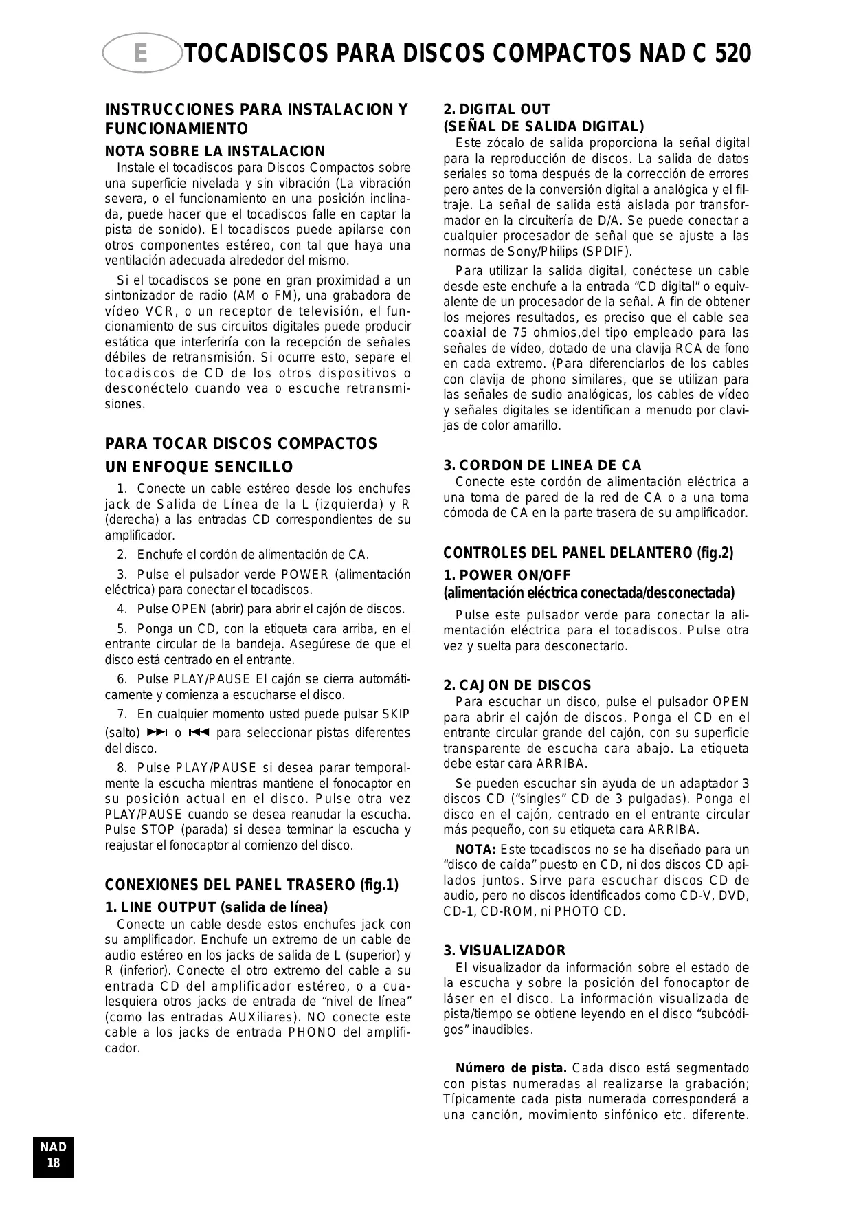 Encuentra gratis el manual del aparato C520 NAD en formato PDF.